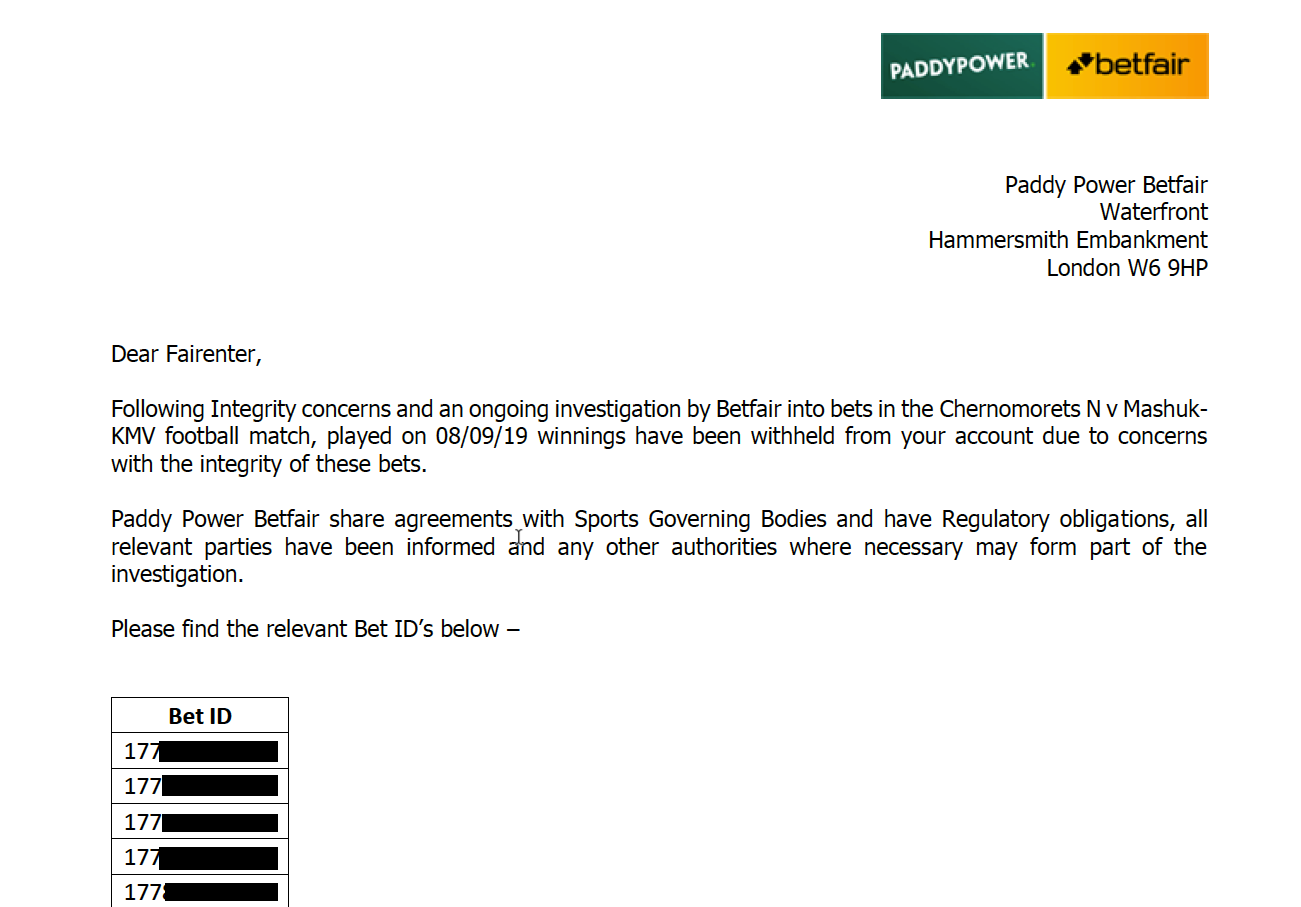 Proof that Betfair actually proceeded to such an action would be an email like the attached which is a real case that happened.